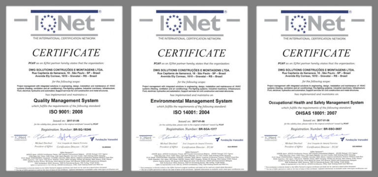 Temos orgulho em anunciar a conquista de importantes certificações internacionais: ISO 9001, ISO 14001 e OHSAS 18001.