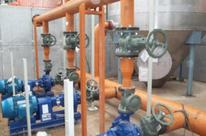 Instalação mecânica, fluída e pneumática de um novo centralizado de emulsão oleosa e potencialização de um existente para alimentação das trafilas finas, sendo, interligação de 04 Tanques 40m³ cada, 02 Torres de resfriamento, 06 Bombas, 05 Trocadores de Calor para alimentação e retorno da linha de produção.